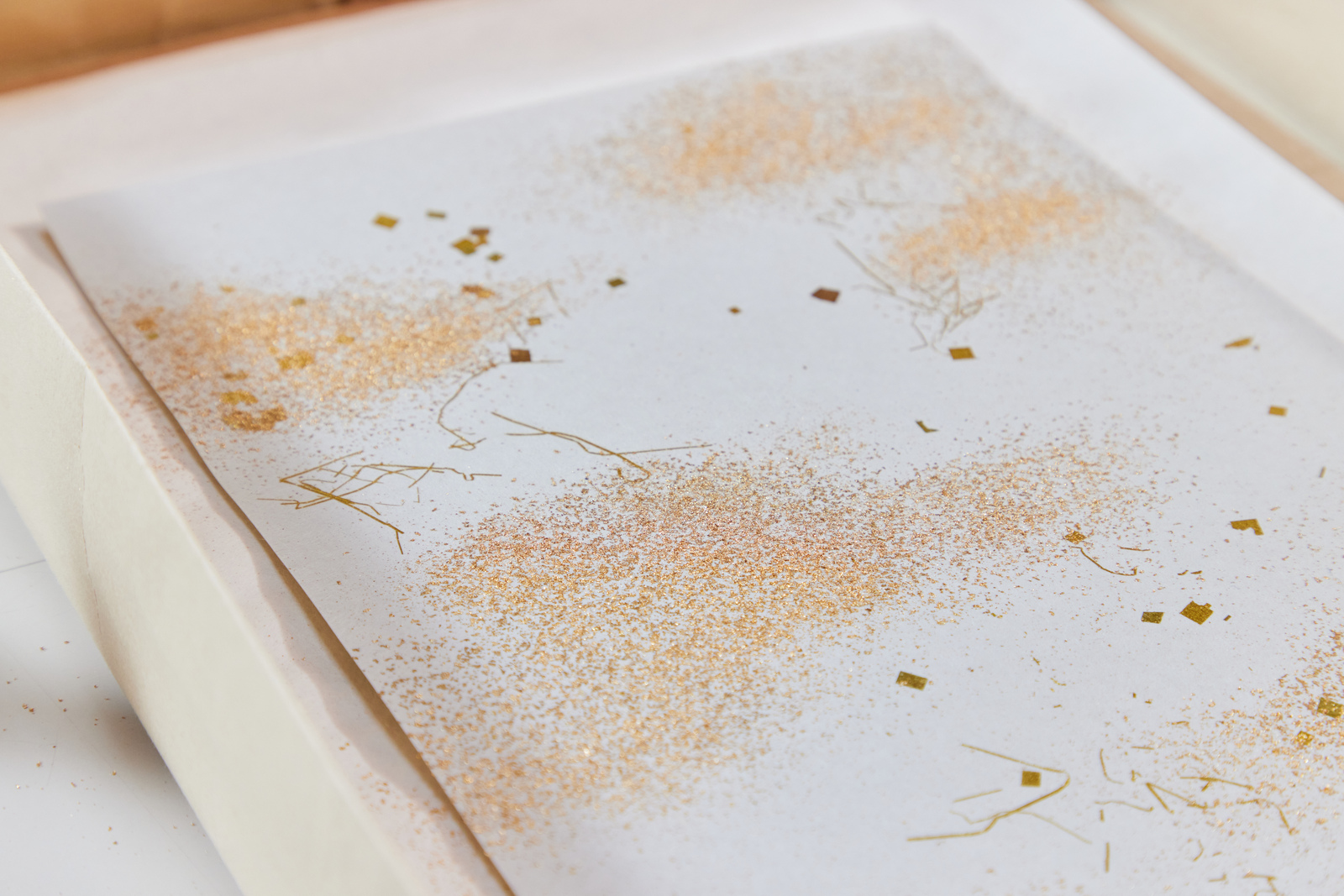 Your one-of-a-kind gold leaf powder will adorn seasonally rendered Karakami paper