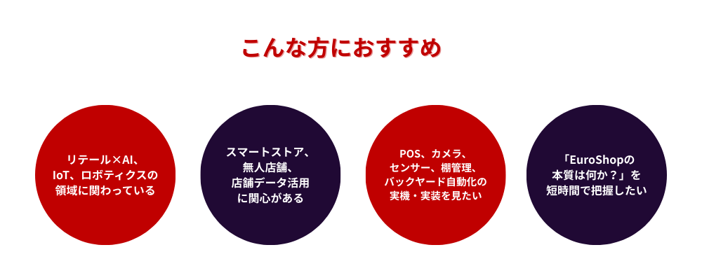| 概要 | EuroShop会場の構成や見どころ、デュッセルドルフへの渡航情報など、専門家が詳しく解説します。EuroShopや海外展示が初めての方でも安心。 |