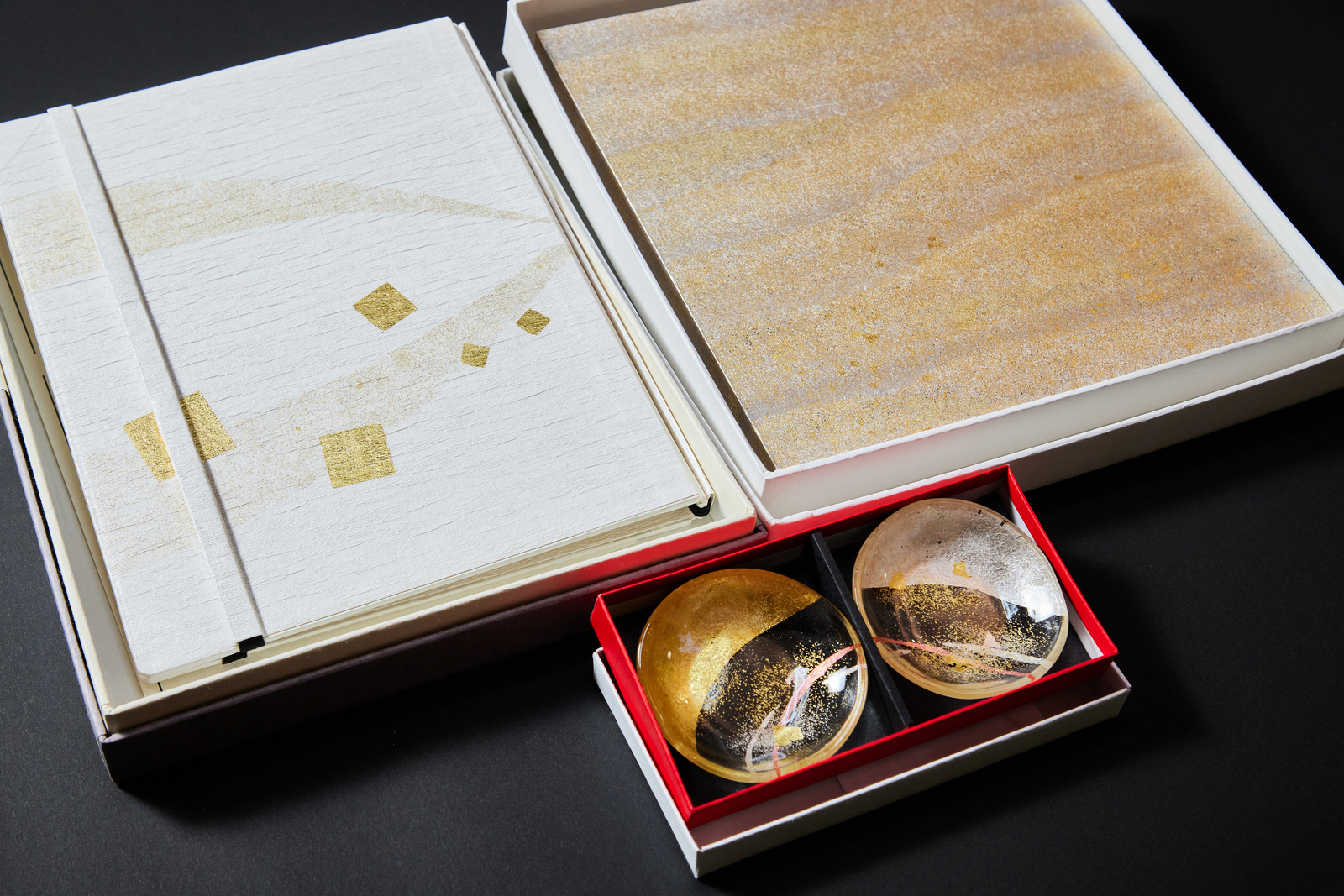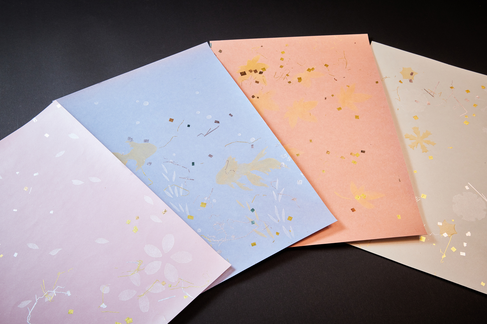Your one-of-a-kind gold leaf powder will adorn seasonally rendered Karakami paper