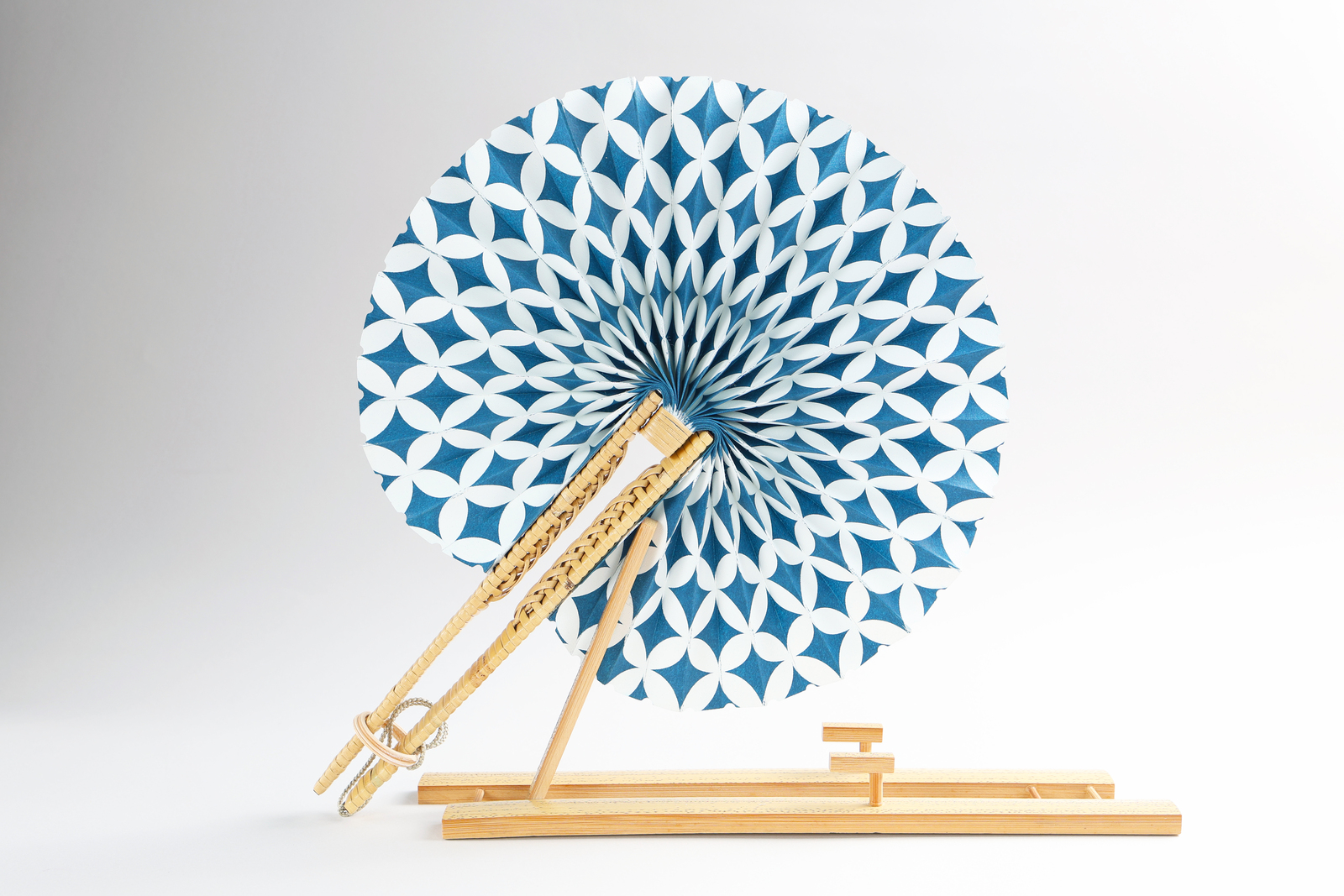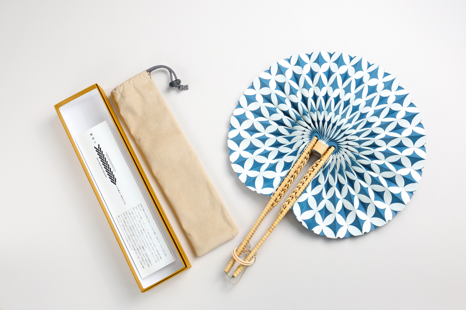 For the last step, you attach the Washi paper fan and the handle. Once it’s dry, it’s complete. The handle fastener is also made of rattan. Your fan will come with a bag and box, so you can give it as a gift.