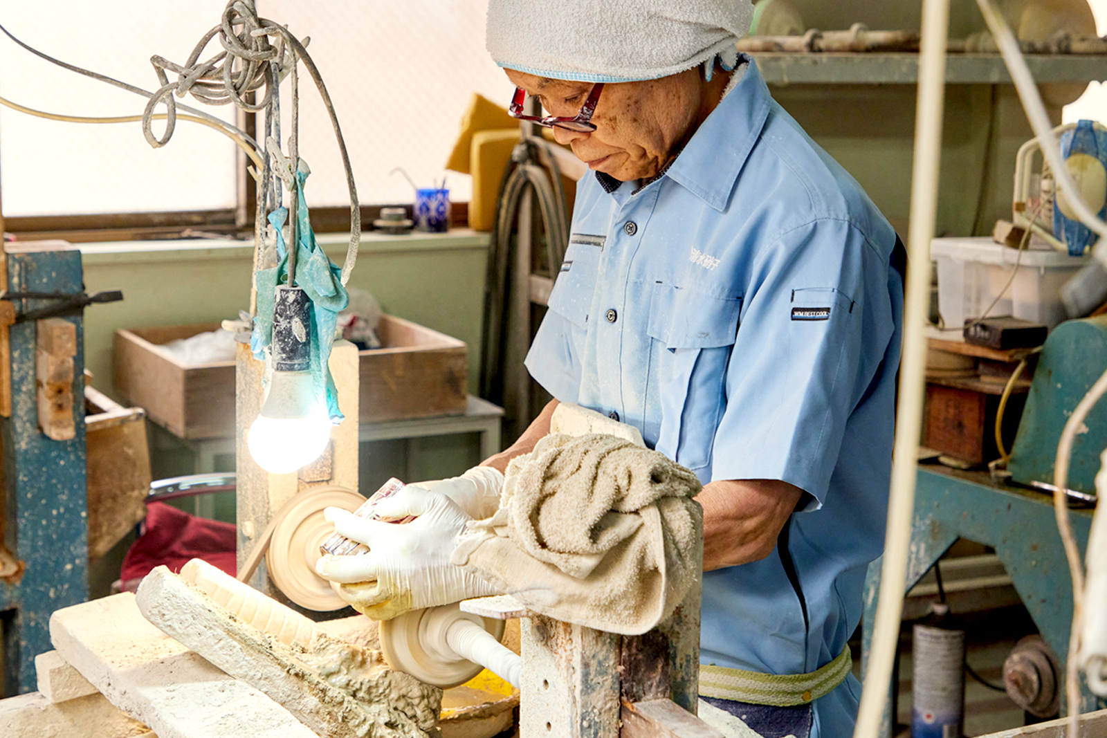 Founded in 1923 in Kikukawa-cho, Honjo (present-day Kikugawa, Sumida-ku). In 1947, Shimizu Glass started accepting commissions from major tableware manufacturers. After a relocation to Horikiri, Katsushika-ku, the following year, the company began manufacturing and selling its own Edo Kiriko cut-glass products in 1994. The highly regarded processing techniques honed through cut glass manufacturing have led to projects beyond the confines of Edo Kiriko cut-glass, such as creating the wall decorations for the elevators at TOKYO SKYTREE.