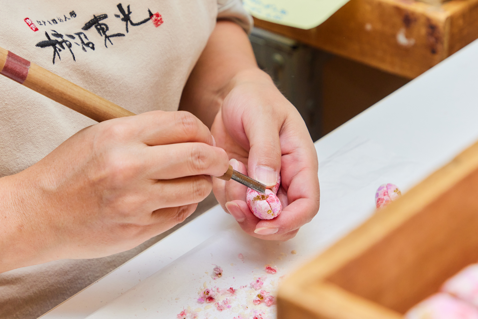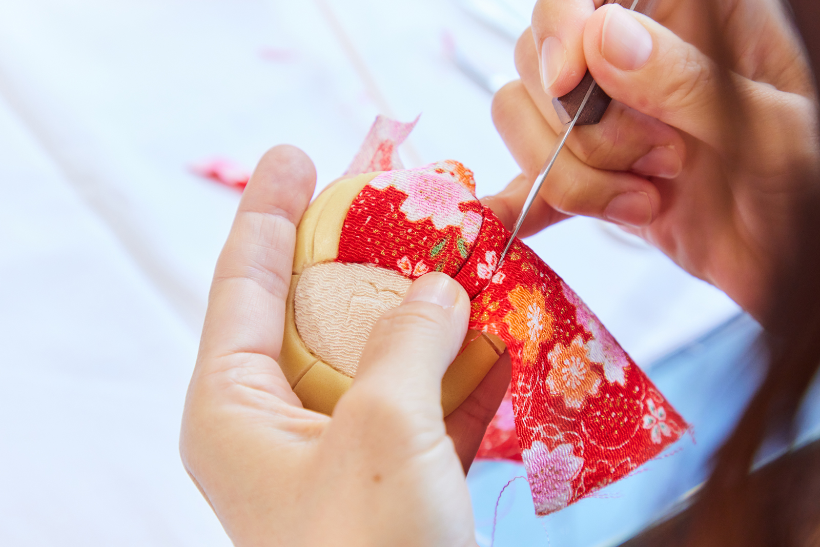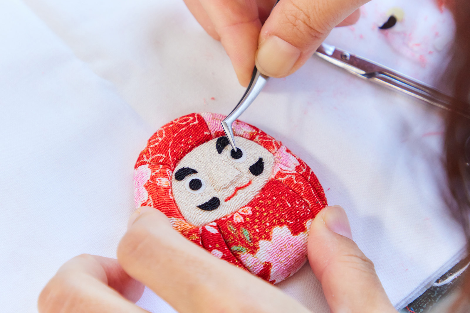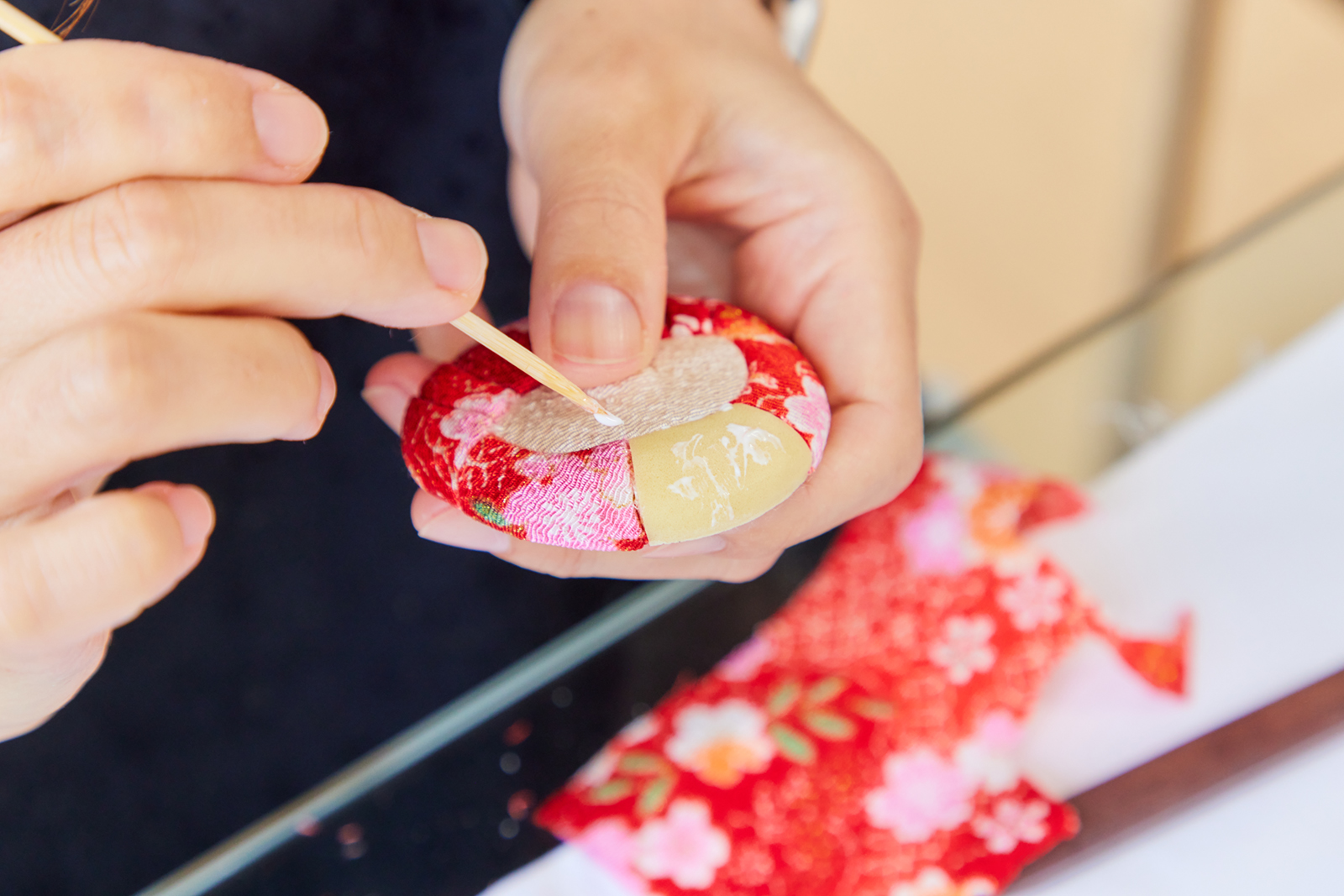 Once the various colors and shapes of cloth have been pressed into place, decorative bits of cloth for human eyes or Shinkansen windows will complete your work. The whole process from start to finish takes about an hour. Time will fly as you focus on the Kimekomi process, and you’ll surely to find engaging with the artisans' intricate craftsmanship a rewarding experience.