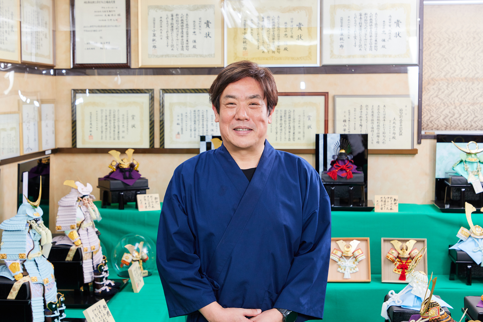 In 1964, following a growth in business, she established Okoshi Chu Mfg., Inc. in Koshigaya City, Saitama Prefecture. Tadayasu's Armor, which fuses the delicate decorative techniques honed through Hina-Ningyo dolls crafting with traditional armor production methods, continues even in today’s modern world to be cherished as a decorative item symbolizing hope for children to grow up healthy.