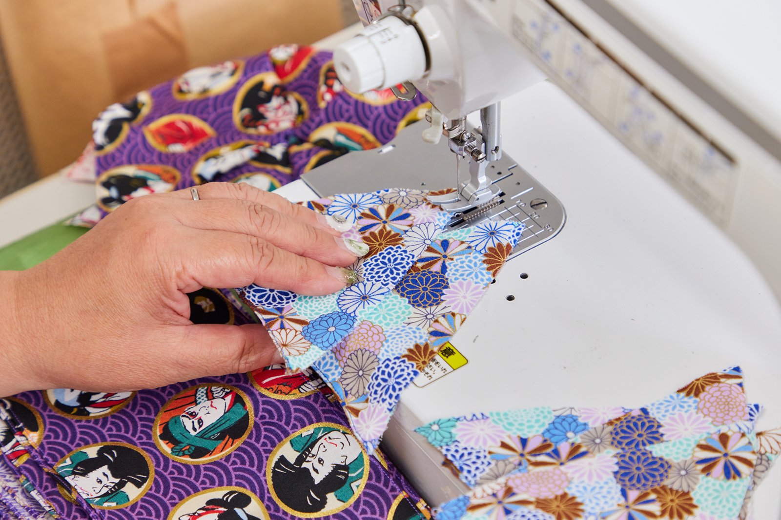 For the miniature umbrella you’ll make, you need six pieces. There are a wide variety of fabric colors and patterns, so you can choose your favorite. There is no need for all six pieces of fabric to have the same pattern. You can use a different pattern for each half, and even a different color or pattern for each of the six pieces of fabric. Choose whatever colors and patterns you like, with your finished product in mind.