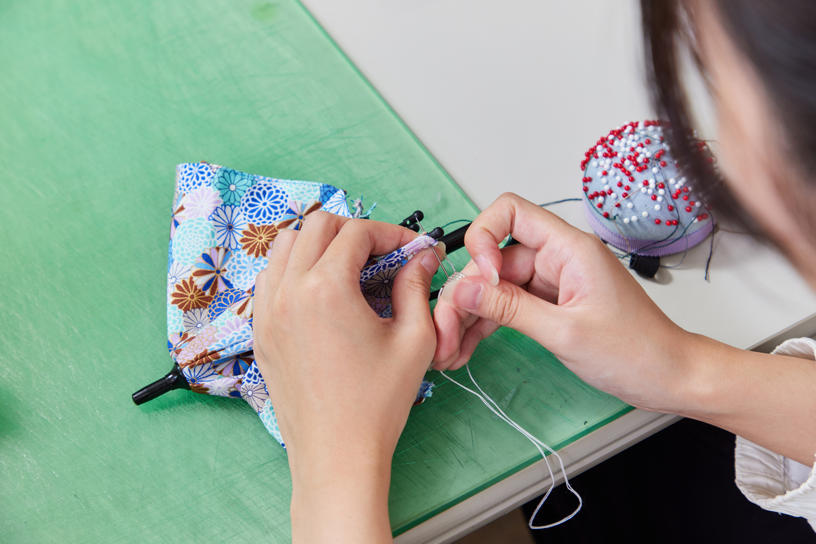 These days, umbrellas tend to be seen as items to be used for a while and disposed of. Ms. Kimie Yamaguchi, the director of Mont Blanc Co., Ltd., says, "If you take proper care of it, a good umbrella can last for decades." The more you use a Hogushi-Ori umbrella, the more character it develops. There are many cases where people have inherited Tokyo umbrellas purchased by their parents decades before and continue to carefully use them, repairing them time and time again.