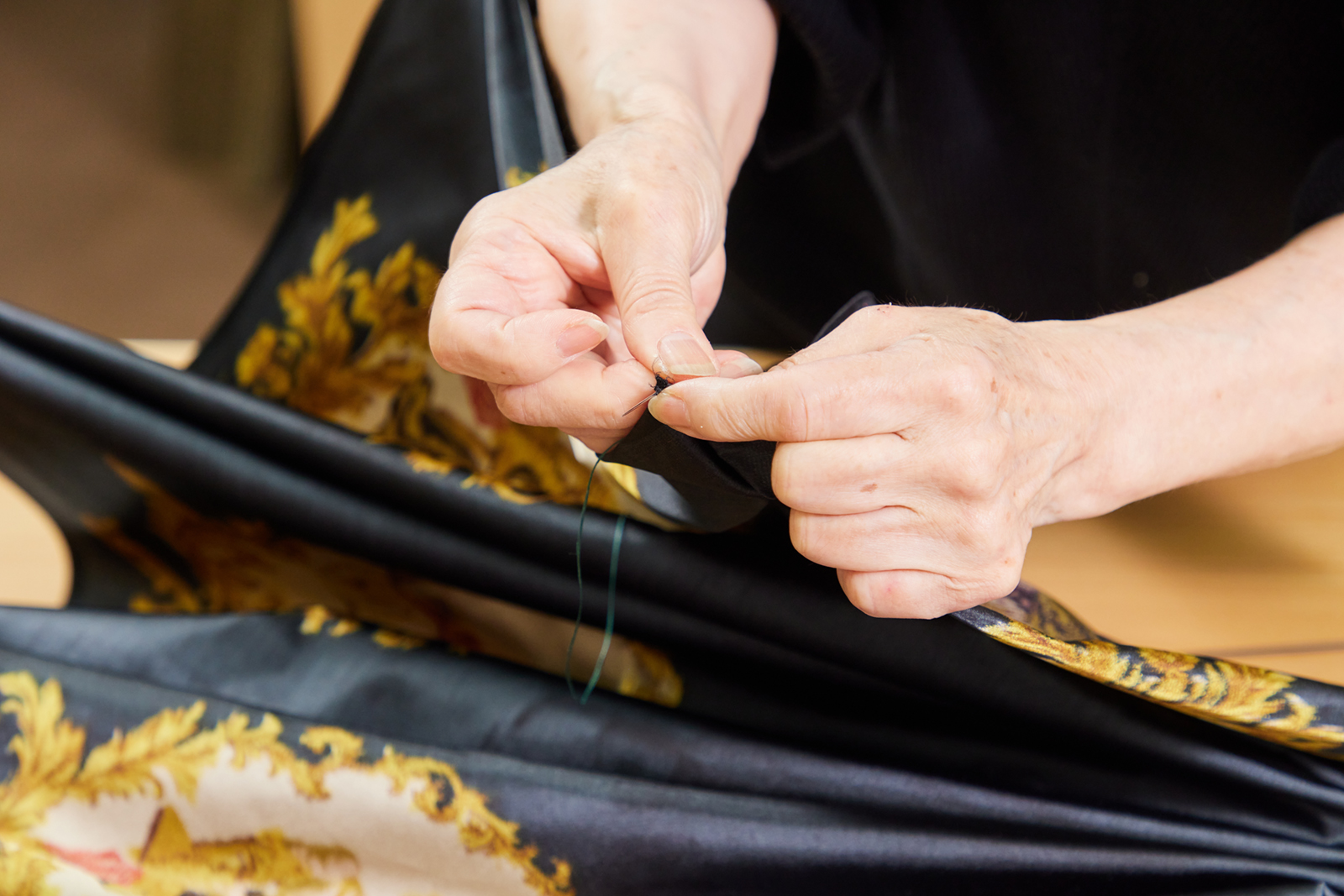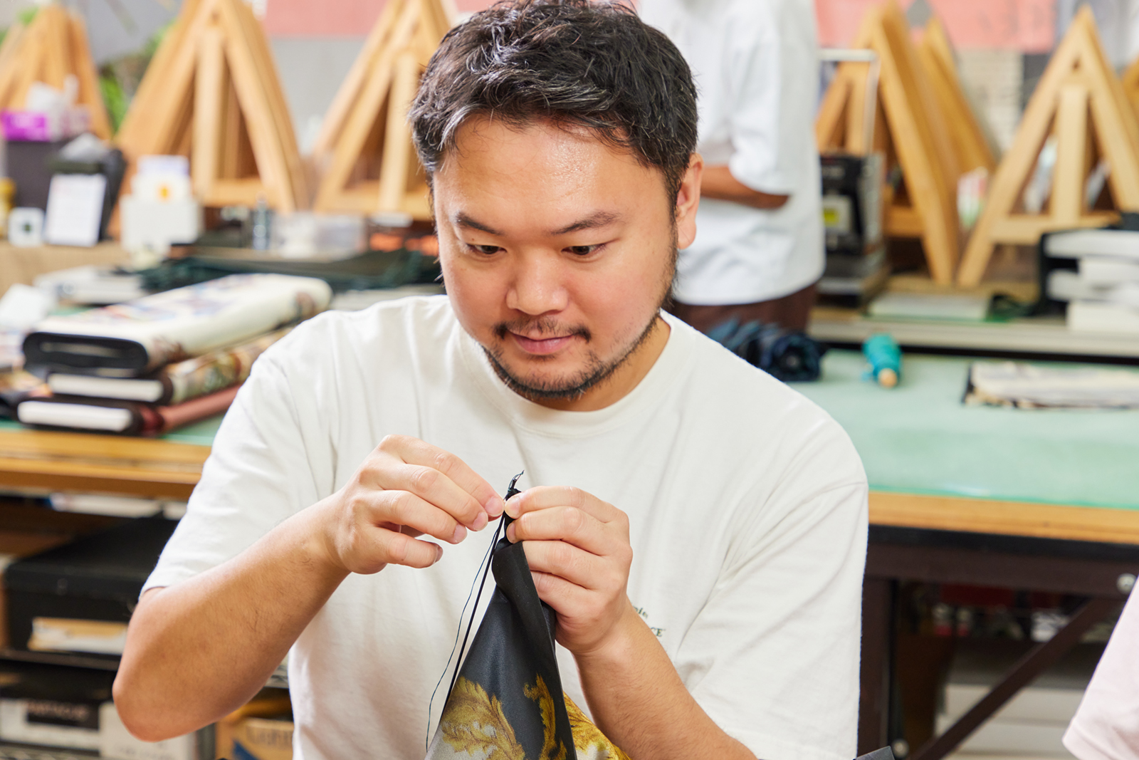 At the shop, the experience will begin with a talk on the history of Tokyo Umbrellas and the techniques used at Ichihara. After this introduction, you will begin sewing, one of the important umbrella-making steps.