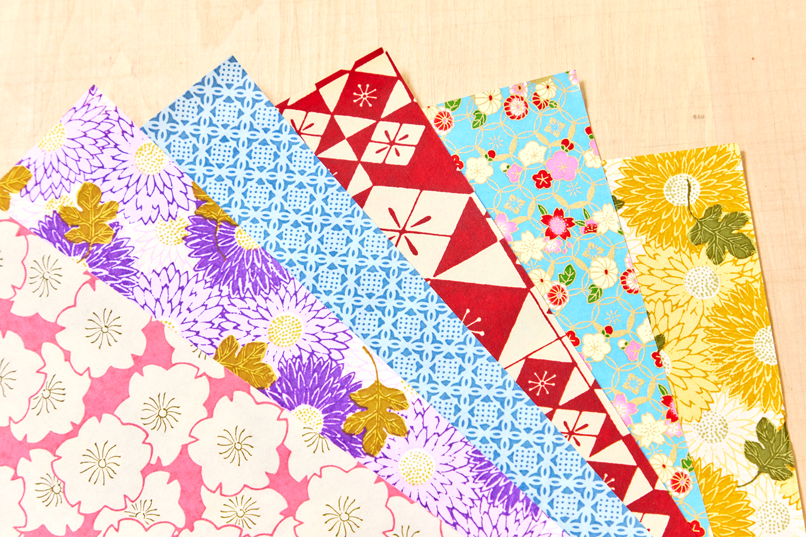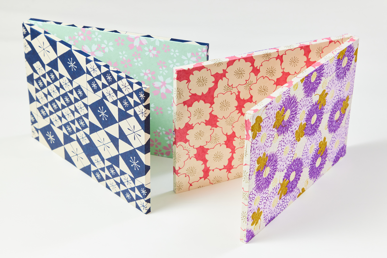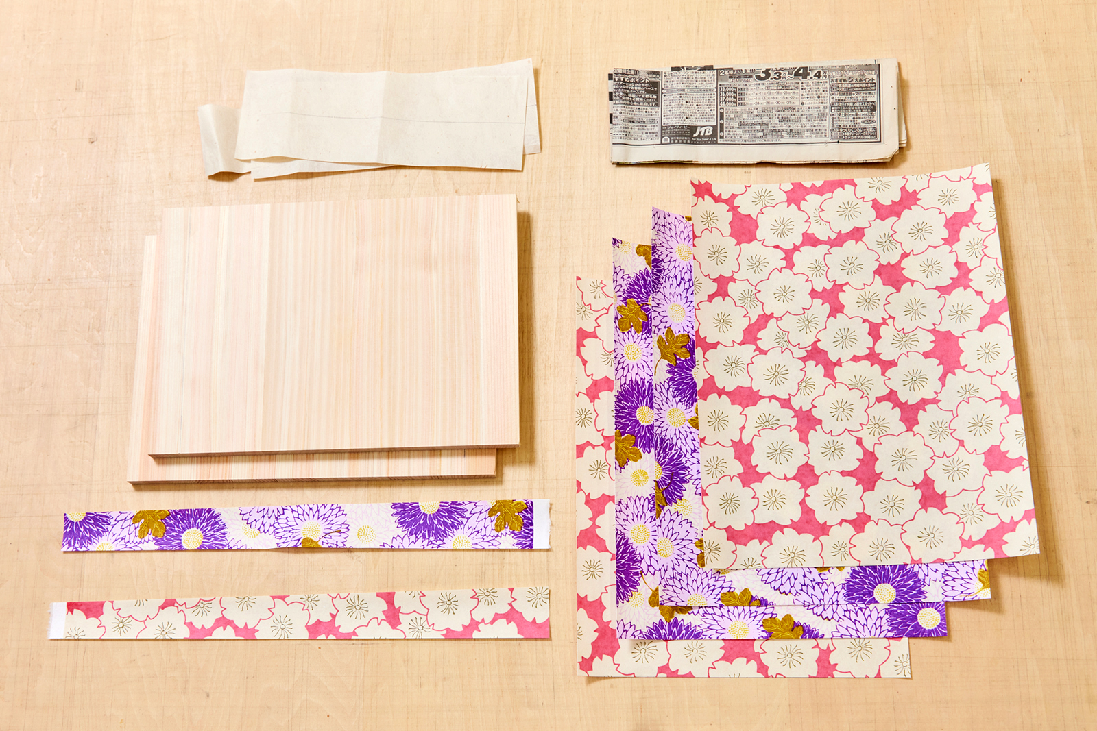 Your activity starts from selecting Japanese paper to mount on the front and back of your folding screen. From among six options, choose two designs that go on each side of the folding screen. While all the designs are vibrant and beautiful, it is best to choose them with an eye toward how they'll look when they are combined.